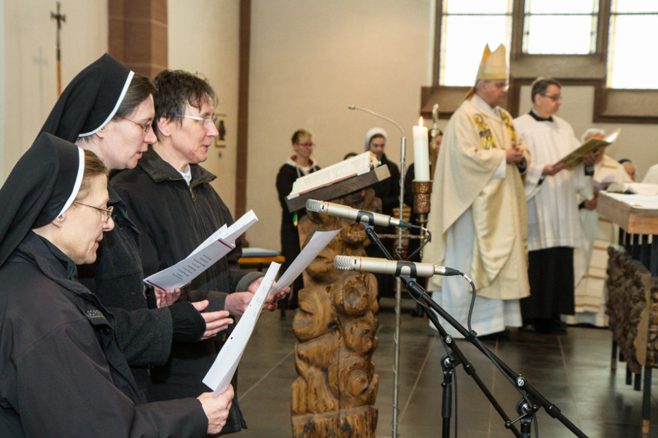 Das war schon sehr weit gedacht. Doch schon in der Gegenwart, im Jahr der Orden, sei es erfreulich, dass sich eine junge Frau sieben Jahre nach dem Eintritt in eine Gemeinschaft weiterhin zu den Gelübden der Armut, der Ehelosigkeit und des Gehorsams bekenne, Gott vertraue und in Zeiten großer Unbeständigkeit Beständigkeit zeige. Der Weihbischof betonte: „Damit setzen Sie ein Zeichen für die ganze Kirche.“