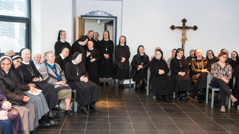 Nicht nur die eigenen Mitschwestern, auch zahlreiche Ordensleute aus dem ganzen Bistum Erfurt applaudierten und gratulierten der 30-Jährigen bei der anschließenden Feier im Placidasaal. Denn die Profess war eingebettet in den offiziellen Abschlusstag der Diözese zum Jahr der Orden. „Es war ein schönes Gefühl, diese Festgemeinde um mich zu haben“, bedankte sich Schwester Guadelupe.