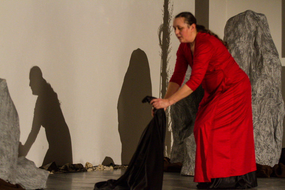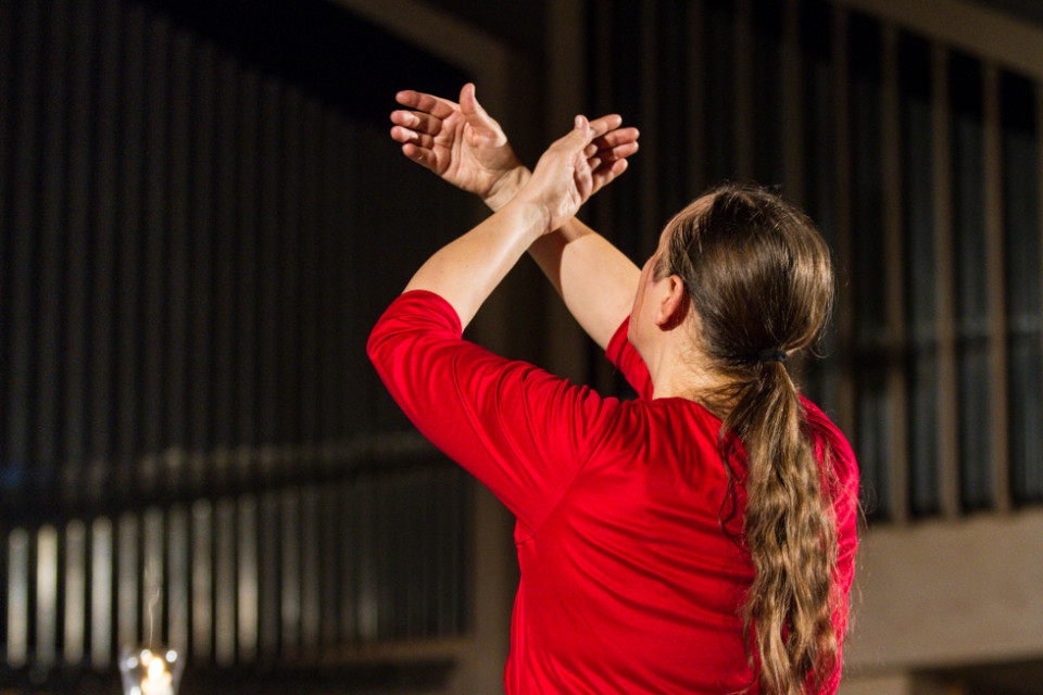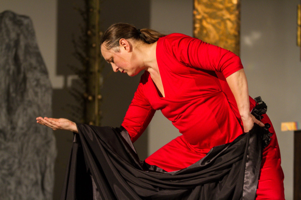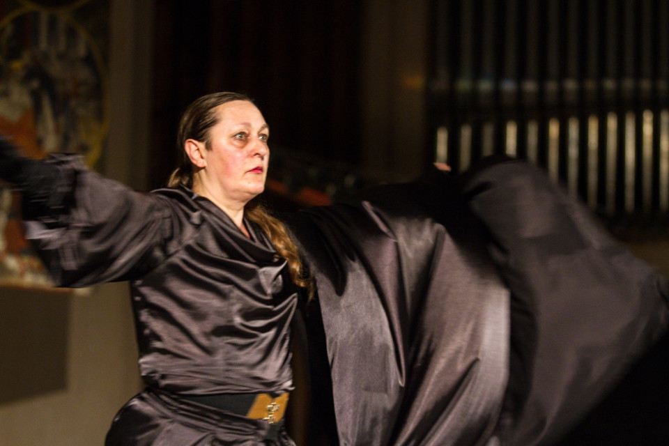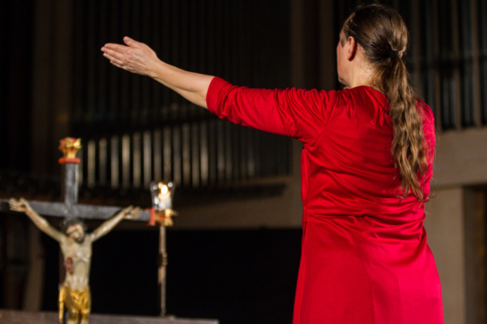 Oliver Avianus zitierte aus dem Matthäus- und dem Johannesevangelium und las Gedichte, unter anderem von Lothar Zenetti, Annette von Droste-Hülshoff und Manfred Kyber. Die gekonnte Betonung seines Vortrages ergänzte sich mit dem ausdrucksstarken Tanz von Kersten Elisabeth Pfaff: Die Verurteilung durch Pilatus, die Krönung mit der Dornenkrone und der Gang zum Kreuz wurden auf diese Weise nicht nur sichtbar, sondern in manchen Augenblicken sogar fühlbar.