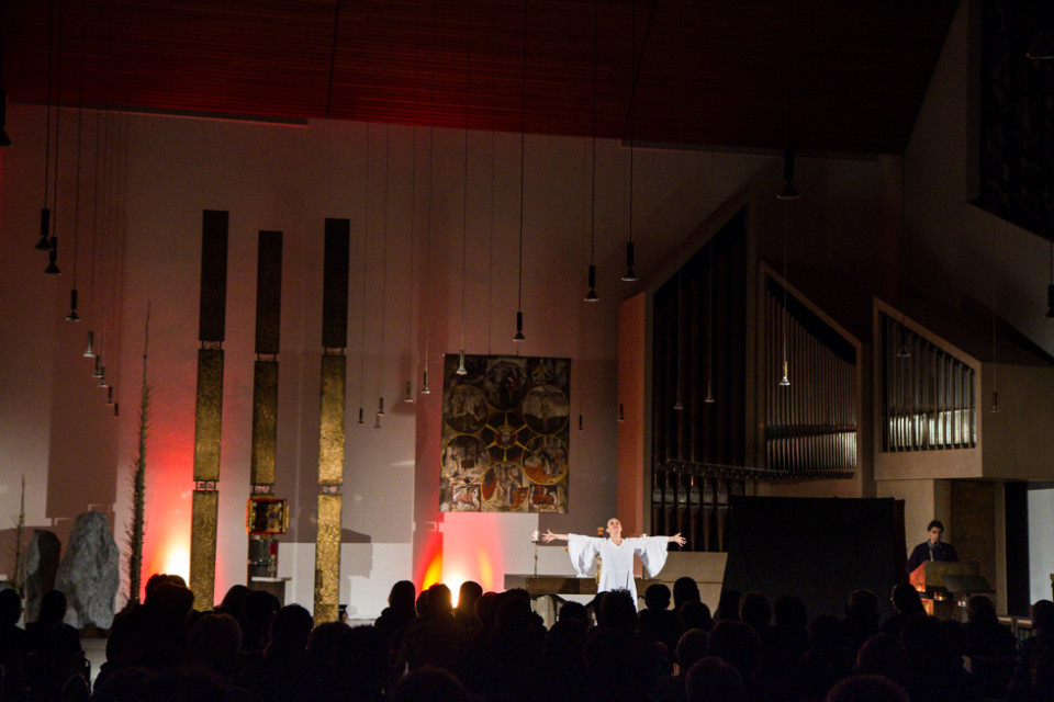 „Die Sonne ward in die Erde geboren im Mysterium von Golgatha.“ Mit diesem Satz eines Gedichtes von Manfred Kyber endete die beeindruckende Darstellung der Leidensgeschichte der Choreografin und Tänzerin Kersten Elisabeth Pfaff und des Sprachkünstlers Oliver Avianus aus Berlin am Abend des Karfreitages in der Dreifaltigkeitskirche. So dramatisch das Leiden Christi an diesem Abend auch bewusst wurde – am Ende drang doch schon die Hoffnung auf Ostern durch.