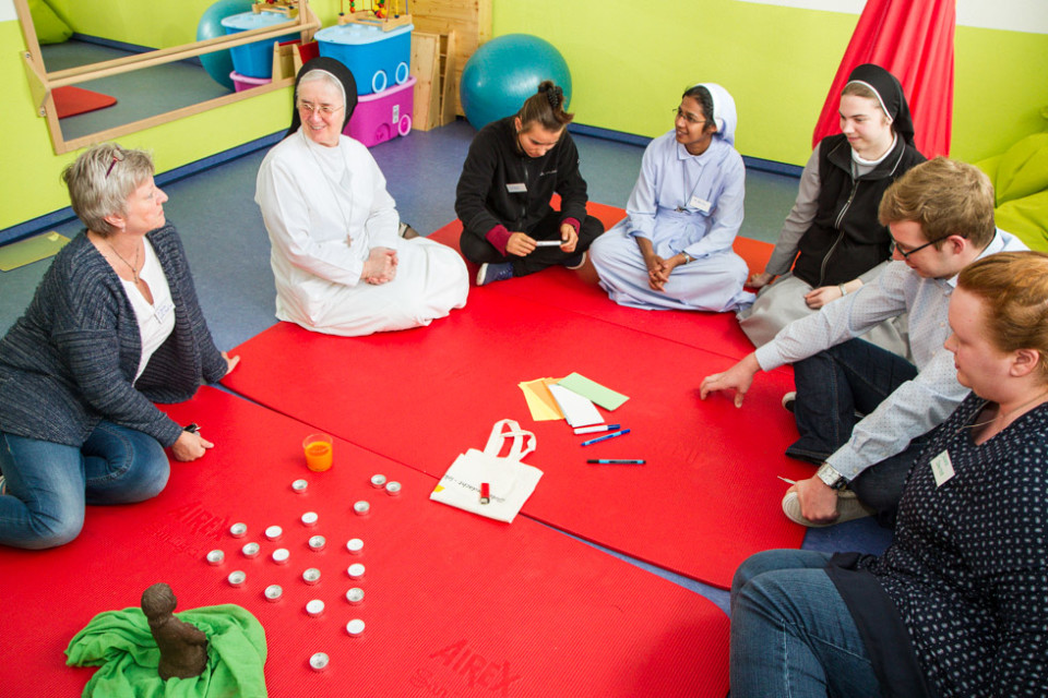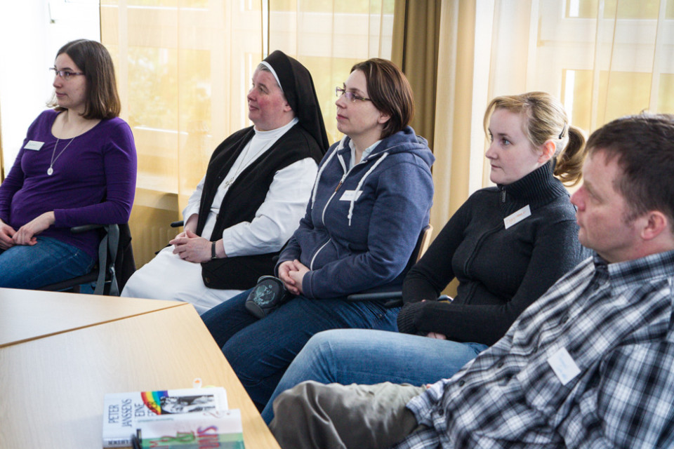 Eine andere Gruppe besuchte das Julie-Postel-Haus, das zum Bergkloster gehört. Hier wohnen junge Mütter mit Kindern, die oft unter schwer vorstellbaren Bedingungen aufgewachsen sind. Die Einrichtungsleiterin Ursula Jenke berichtete von ihren schwierigen Biografien.