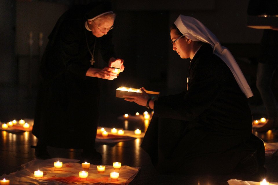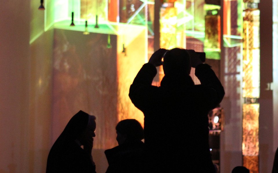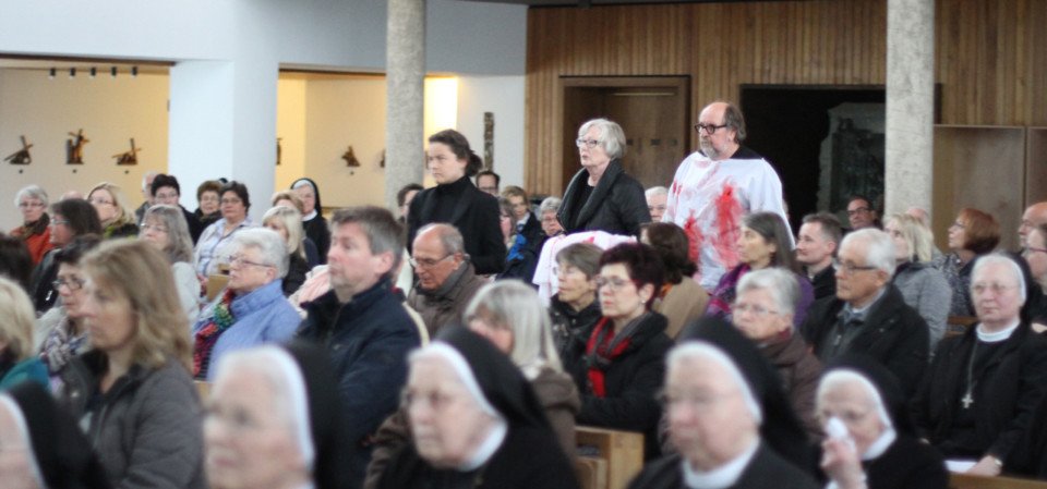 Schwester Maria Ignatia Langela, die bereits zum siebten Mal eine Veranstaltung am Karfreitag im Bergkloster organisierte, die das Leiden Jesu und das Ostergeheimnis in künstlerischer Weise reflektiert, dankte Ludger Hinse und Barbara Marreck mit den Worten: „Sie haben uns sehr berührt.“ Besonders beeindruckend sei gewesen, wie die Projektionen des Leids nicht nur den Altarraum füllten, sondern auch in sein Herz, den am Karfreitag offen stehenden Tabernakel, drangen.