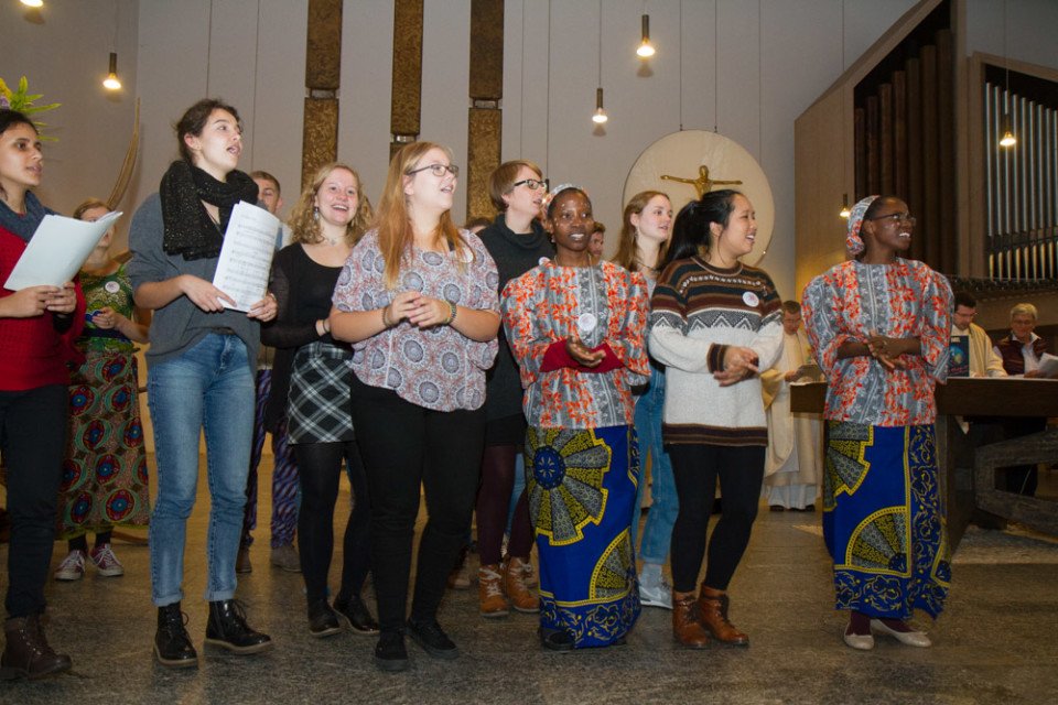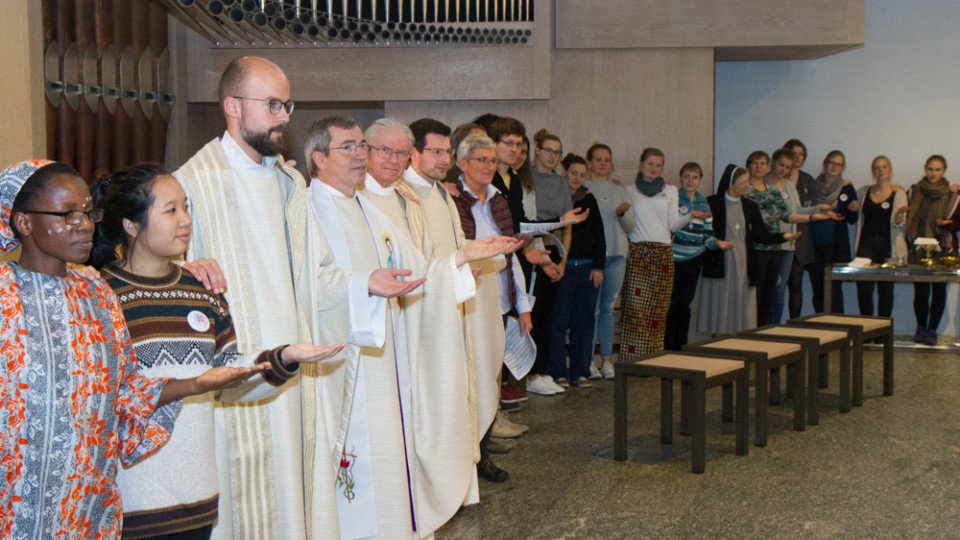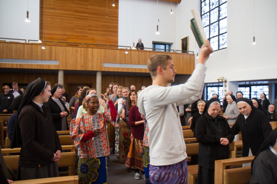 Der Gottesdienst fand zusammen mit den Schwestern und Gästen aus dem Bergkloster in der Dreifaltigkeitskirche statt. Auch die vier Zelebranten hatten alle einen intensiven Bezug zu dem Thema: Der Steyler Missionar Pater Michael Heinz, heute Geschäftsführer beim Hilfswerk Adveniat, lebte bis 2016 zwei Jahrzehnte in Bolivien und hatte die Schwestern der heiligen Maria Magdalena Postel dort kennengelernt. Pfarrer Bernd Kucklick ist seit 2003 Rektor im Bergkloster Heiligenstadt und leitet dort Jahr für Jahr die Aussendungsfeier. Die Priester Andreas Braun und Christof Graf waren von ihm für ein Auslandsjahr entsandt worden.